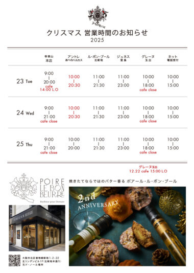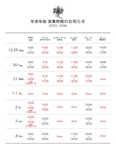 年末年始期間の店舗営業日は通常と異なる日がございますので