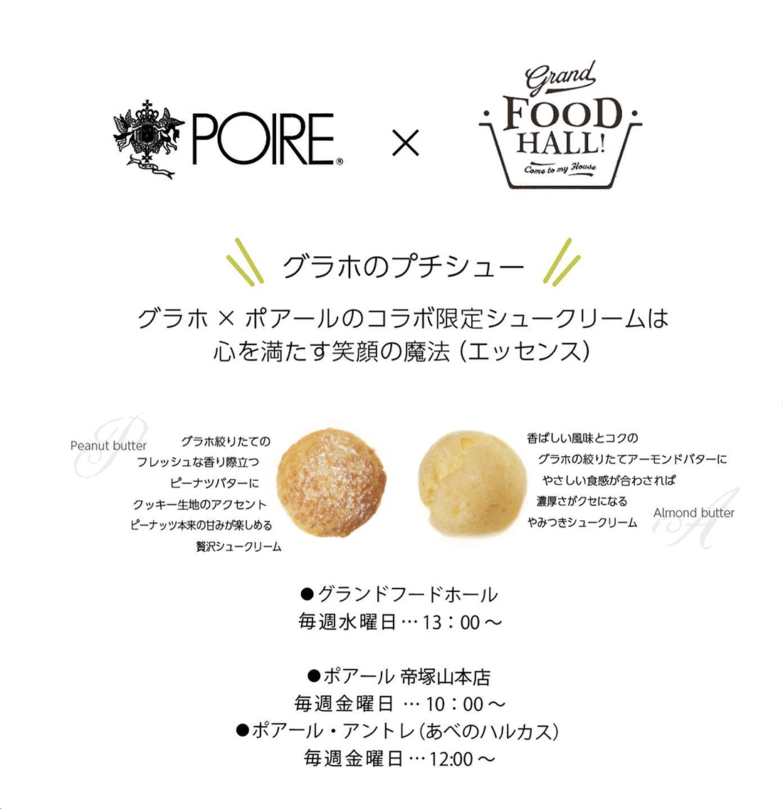 グランドフードホールで大人気のピーナッツバターとアーモンドバターがポアールのシュークリームとコラボ!
