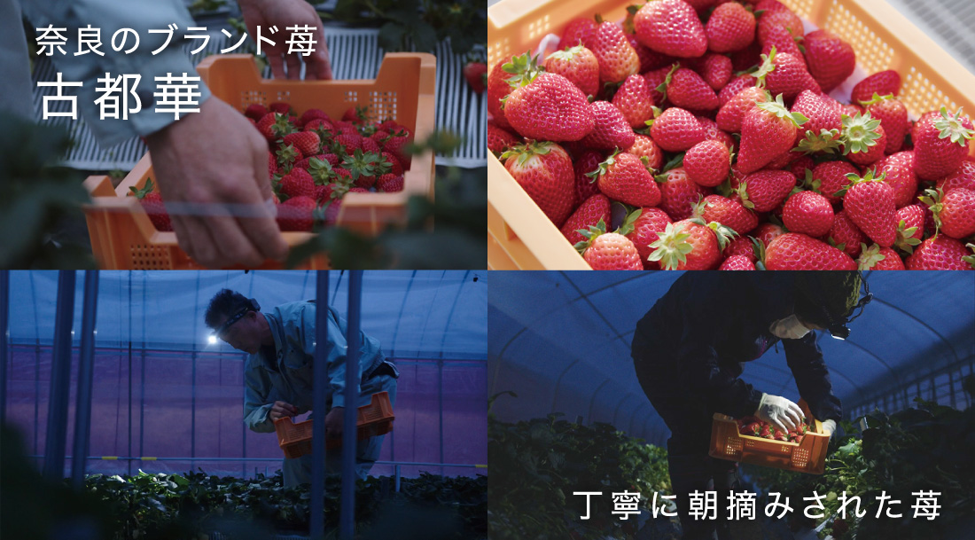朝摘み、奈良のブランド苺「古都華」を贅沢に