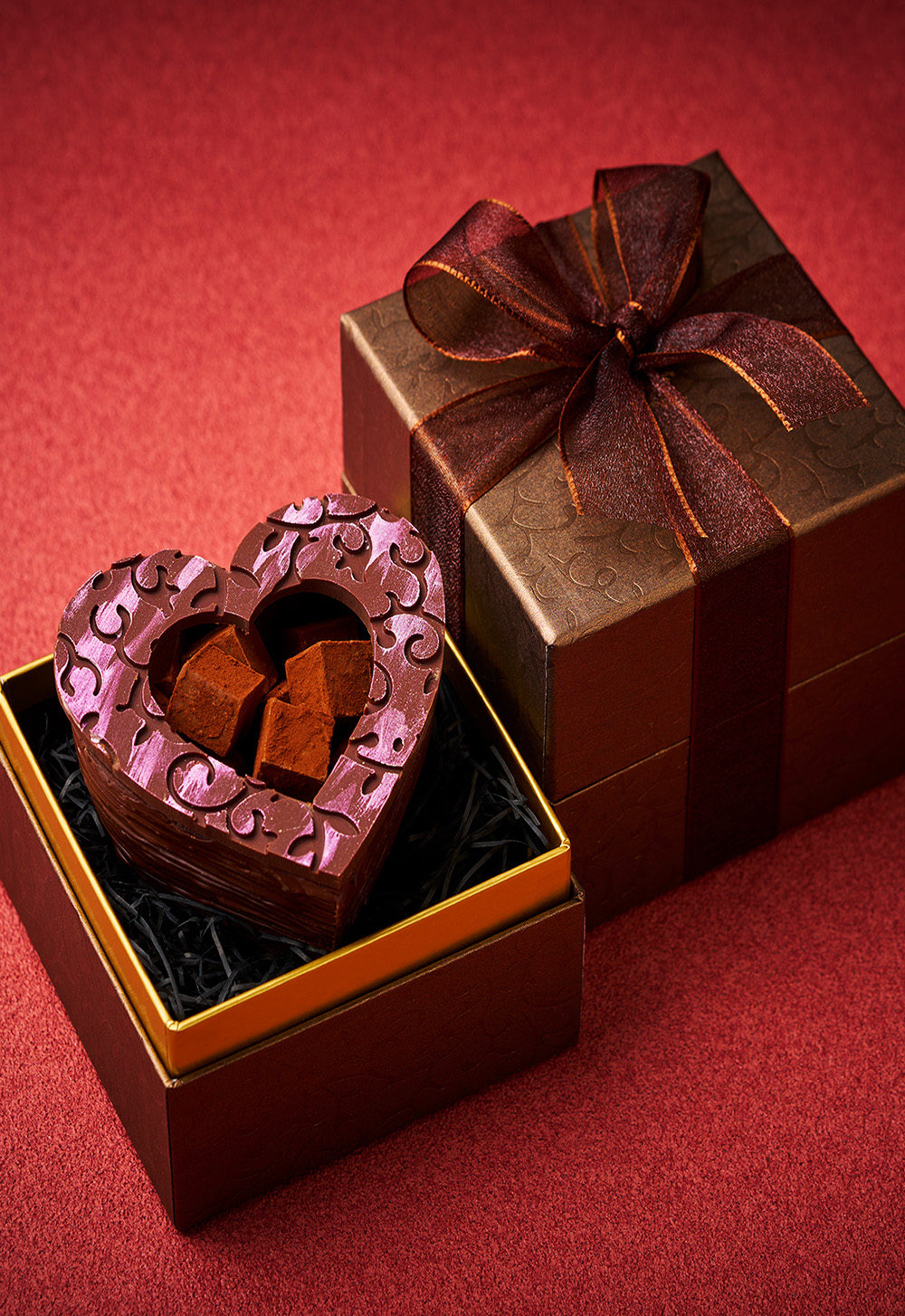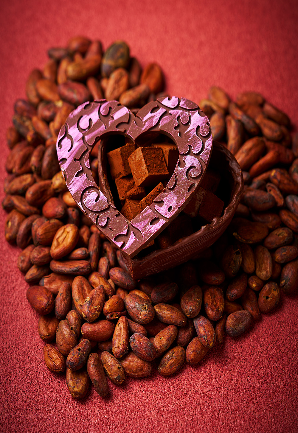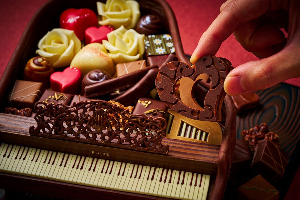 口溶けのよさとチョコレート本来の贅沢な香りを愉しめるパヴェを詰めたハートの器まで食べることのできるショコラ。