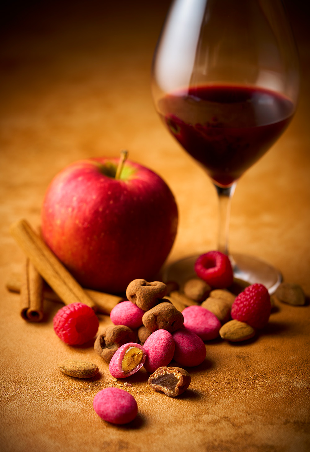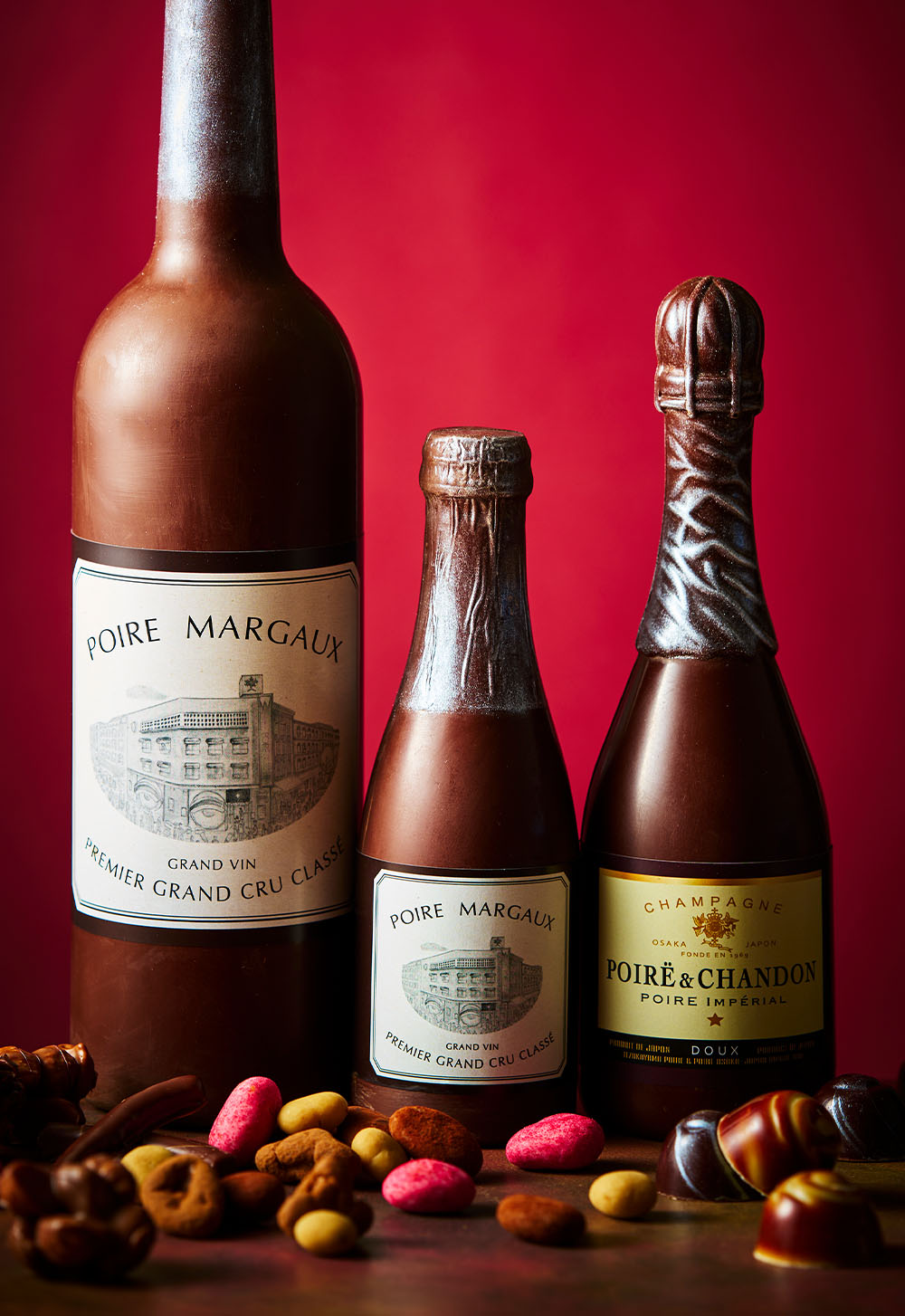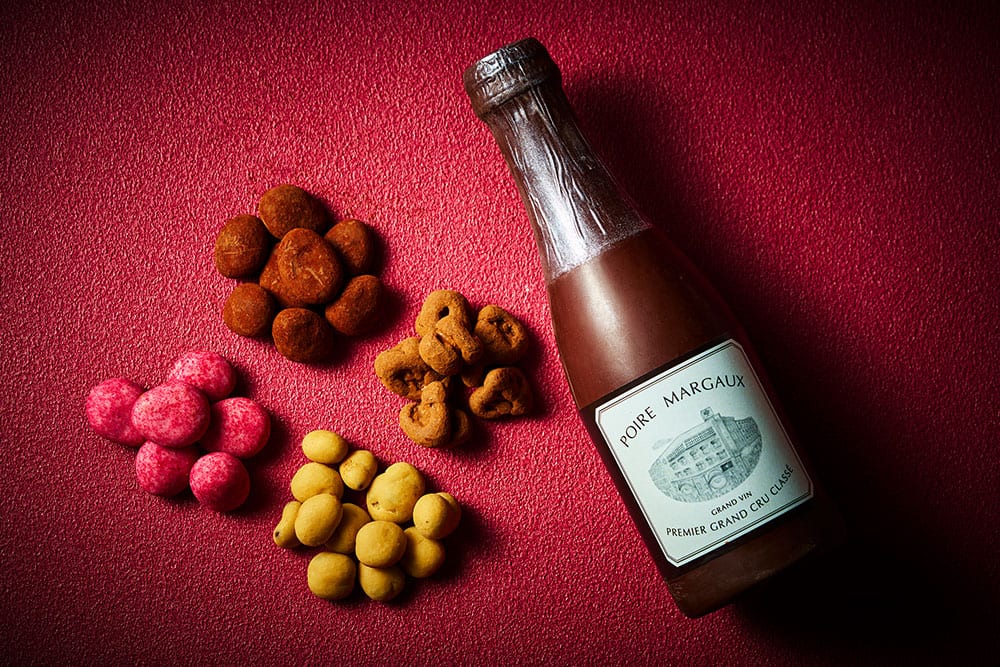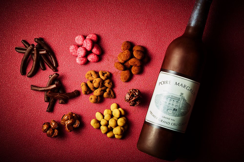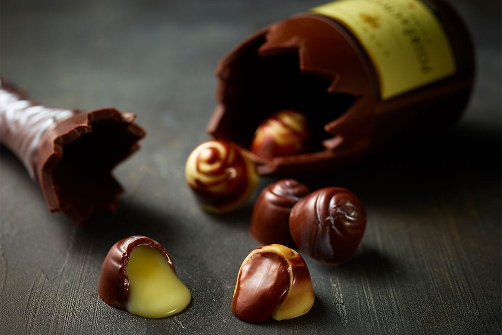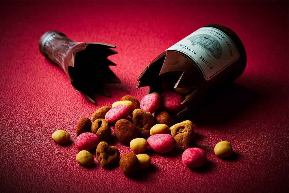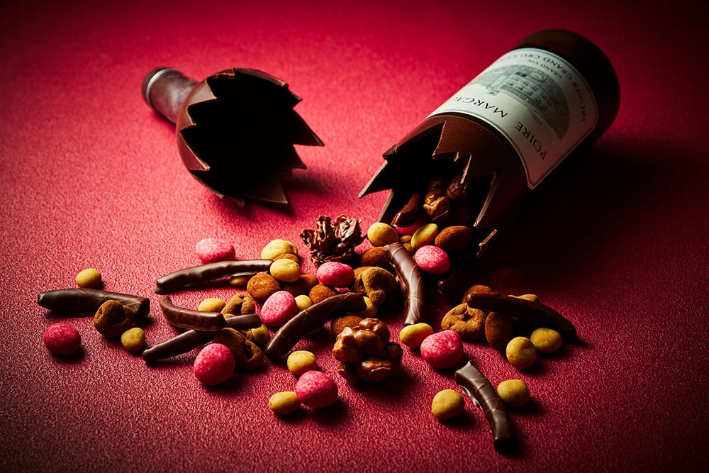 ボトルを割ると溢れ出すワインに合わせても愉しんでいただけるようセレクトしたチョコレート。