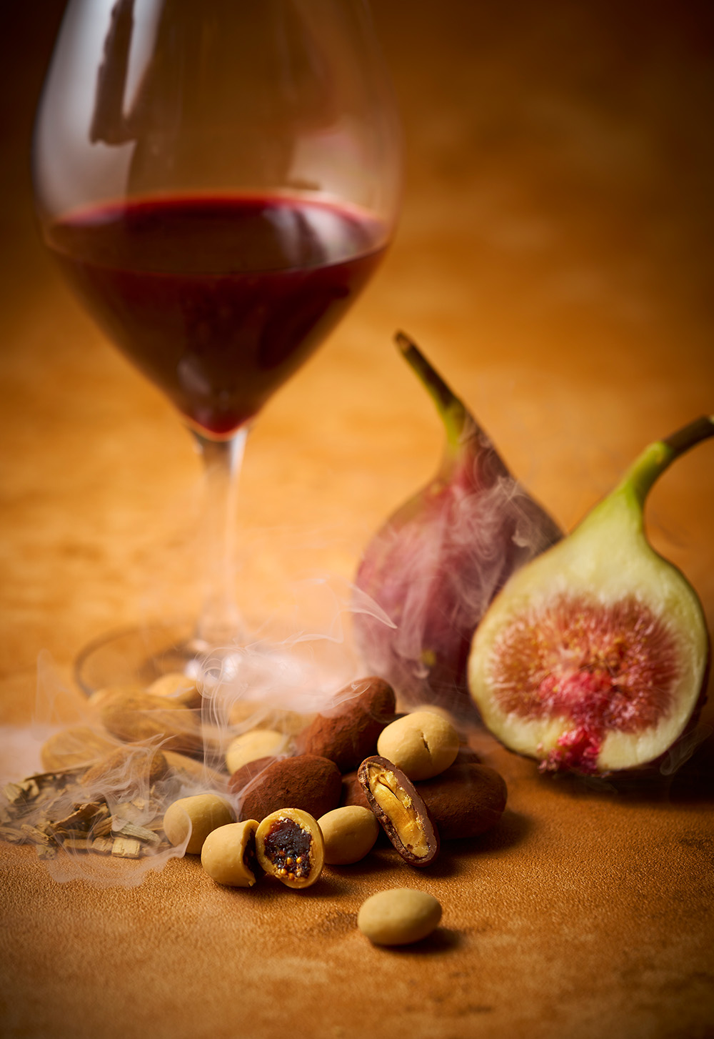 オークチップから自家燻製したアーモンドにウッディで爽やかな香り、マイルドなアマゾンカカオで包み込む。