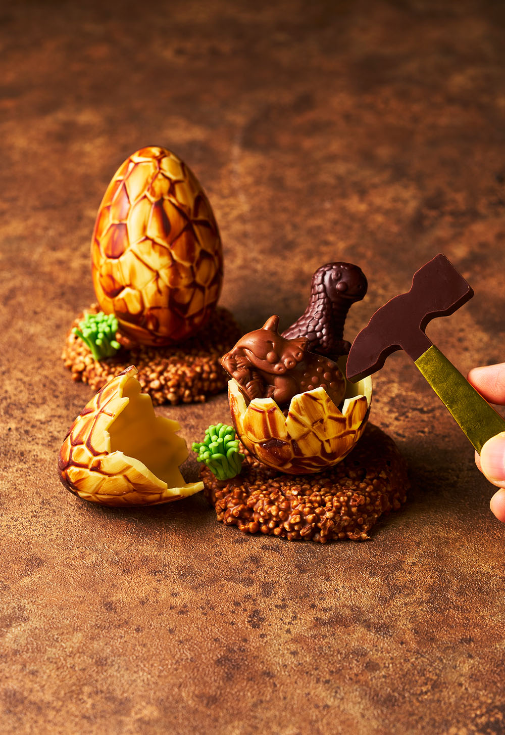 チョコハンマーで卵を割ると中から恐竜が。