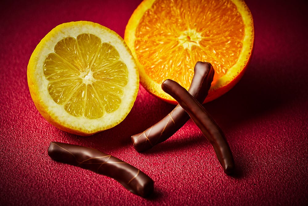 じっくりコンフィした瑞々しいオレンジピールにスイートチョコレート。